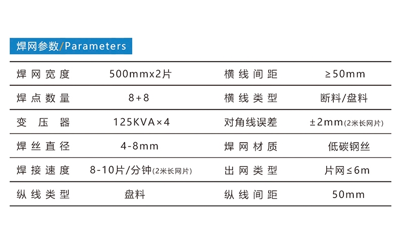ALC是蒸壓加氣混凝土(Autoclaved lightweight Concrete)的簡(jiǎn)稱,它是以石英砂或粉煤灰、水泥、石灰等為主原料,內(nèi)配雙層雙向冷拔絲鋼筋網(wǎng)片,經(jīng)過高溫蒸汽養(yǎng)護(hù)而成的多氣孔混凝土成型板材;既可做墻體材料,又可做屋面板、樓層板、外墻造型,是一種性能優(yōu)越、安裝簡(jiǎn)便、靈活的成熟建材。雙片加氣板網(wǎng)片焊接生產(chǎn)線,可以高效率地自動(dòng)焊接ALC所需的鋼筋網(wǎng)片。焊點(diǎn)數(shù)量8+8個(gè),焊網(wǎng)寬度500mm×2,焊接絲徑4-8mm,每分鐘約焊接10片。標(biāo)準(zhǔn)配置:縱線盤絲、調(diào)直切斷、自動(dòng)排料、自動(dòng)送料、橫線料斗、焊接主機(jī)、伺服拉網(wǎng)、快速出網(wǎng)、簸箕式落網(wǎng)??蛇x配置:正反片落網(wǎng)、落網(wǎng)小車、橫線盤料、工業(yè)冷水機(jī)、空壓機(jī)。河北驕陽(yáng)焊工有限公司,0318-7063097
